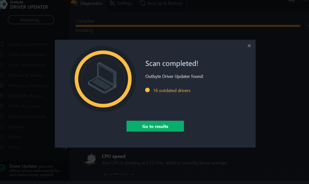 The process starts with a download from Outbyte.com and scanning your PC. The software will examine all necessary aspects and show you the results in the ‘Diagnostics’ tab while it’s working.