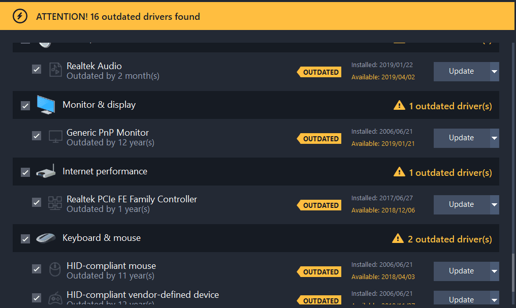 The Outbyte Driver Updater gives you a detailed report of the outdated drivers on your device. Knowing how up to date a certain item is, can help you make an informed decision whether it’s necessary to update it or not.