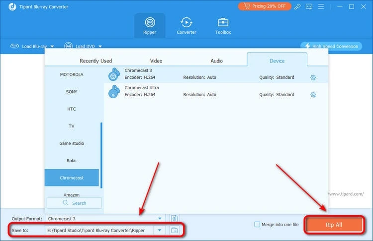 When you complete all video and audio settings, you choose the path to save the video after Blu-ray ripping. Then, there should be a Rip button on a program, and you should click it to start ripping the Blu-ray disc.