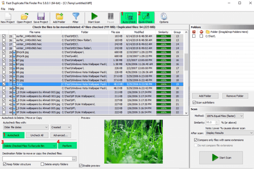 - Digs deeper into duplicate files with the internal preview feature.