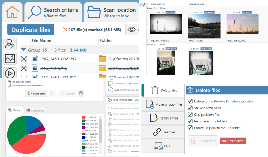 - Locate duplicate pics and other identical files.