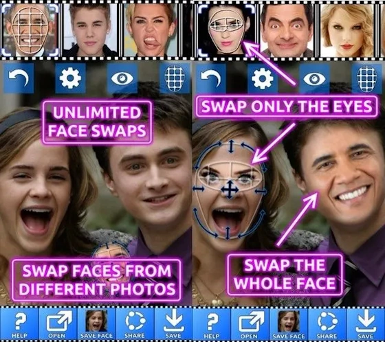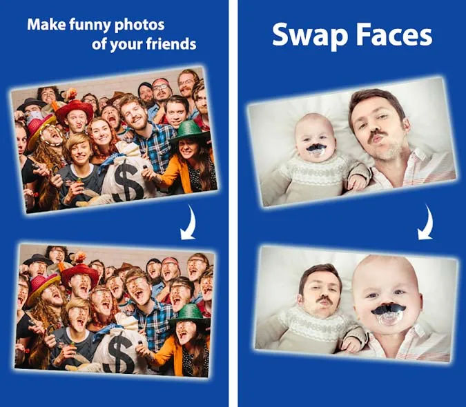Face Swap Booth is an easy app to install if you want a full set of faces that you can shift around at any moment. The amazing face-swapping apps allows you to manually add faces or let the application recognize them for you. You may use these various looks to play with different folks. Furthermore, the app allows you to swap your face with pre-loaded celebrity faces.