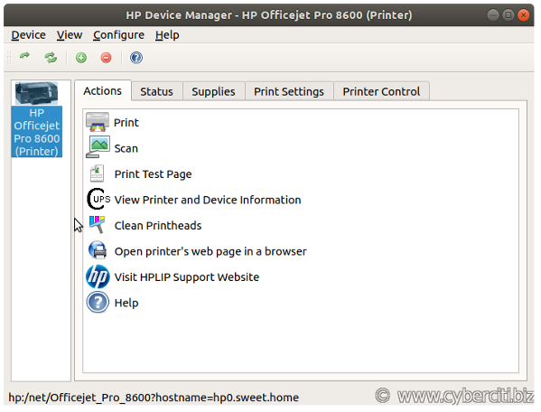The HP Device Manager (aka βToolboxβ) for HPLIP supported devices such as printers and scanners. It provides access to status of printer, tools, ink/supplies levels and more. Simply type the following command:hp-toolbox