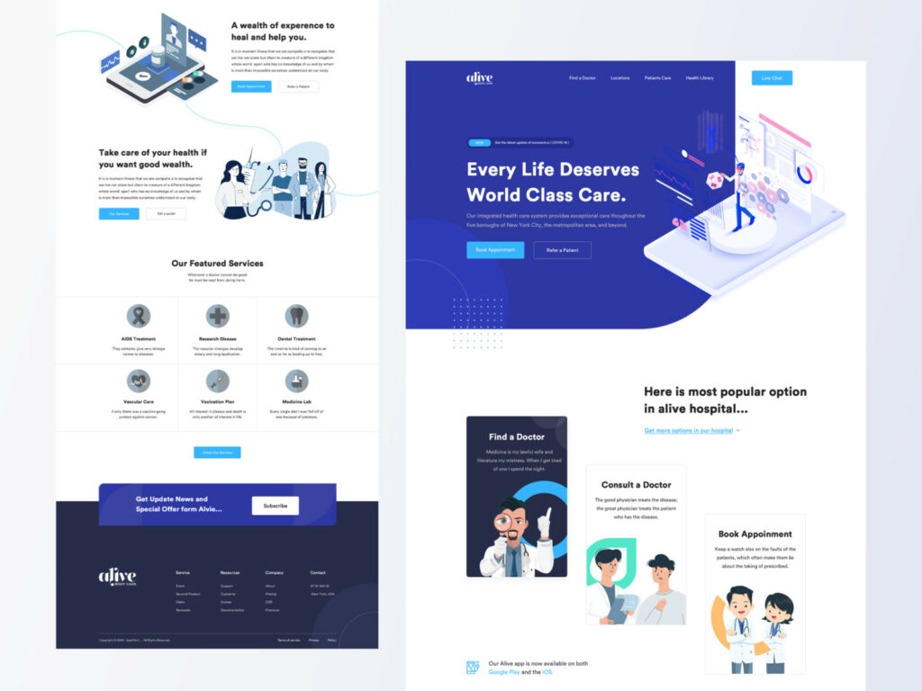 When you compare one medical website to the other, you will notice that they each require a different kind of content, format, and pictures, but there is one common aspect: the usage of white and blue colors. Using white color depicts sterility and helps in making an impression of credibility.